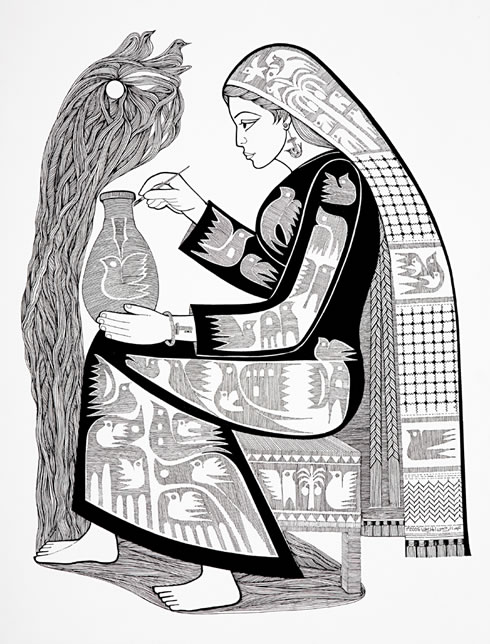 Al Waradatt, 2006 Abed Alrahman el Mozayyen was born in Palestine in 1943. After a BA and MA in fine art at Helwan University, Egypt, he received his PhD in Archaeology from the University of Khartoum, Sudan, in 1993. Active within the Palestine Liberation Organisation in teaching and cultural activities, he was Head of the PLO's art and cultural programme for Africa from 1984-94. As Founder and Director of the Artists of the Earth group, he has mounted over 30 international exhibitions and written books on the history of Palestinian and African art. Lives in Gaza City.