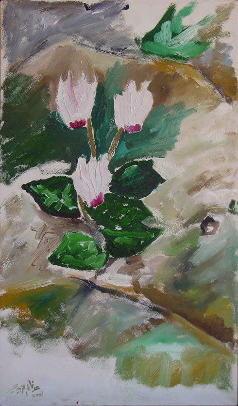 1. Flowers of Palestine (Cyclamen), 2001 Adnan Zubeidiwas born in Tulkarem, Palestine. After graduating from university in Beirut with a BA in Arabic literature (1977), he returned to Palestine and taught art at various schools and colleges in Bethlehem and Ramallah. Besides exhibiting in Palestine and internationally, his public sculpture, set designs and projects with children took place in Bethlehem, Hebron, Jerusalem and other cities. He lived in Bethlehem until his death in 2007. Image1 » Image2 » Image3 » Image4 » www.occupiedspace.org.uk • www.qattanfoundation.org • www.palestinecampaign.org |