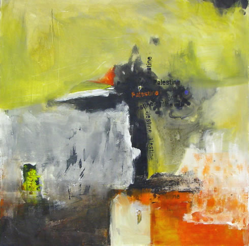 1. Palestine, 2007 SOLD Bashar Hroub graduated from An Najah University, Nablus, in 2001 with a BA in painting. His work has been shown in solo and group exhibitions in Palestine, the Arab world, Japan, Norway and Scotland, including a solo exhibition at the Al Hallaj Gallery in Ramallah and the Bethlehem Peace Centre in 2005. A participant artist in the Braziers International Artists Workshop in the UK (2007) and the Shatana Workshop in Jordan (2008), he is a founder member of a new artist-run gallery space, Al Mahattah, in Ramallah. Lives and works in Ramallah. www.occupiedspace.org.uk • www.qattanfoundation.org • www.palestinecampaign.org |