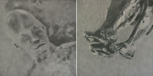 1. Inherited Memories (diptych), 2007 Jawad Malhi was born in Jerusalem in 1969. In 2007, he received his MA in Fine Art from the University of Southampton in the UK. Jawad has had many solo and group exhibitions in Palestine and elsewhere, and been commissioned to do murals and public sculptures. He co-founded the Open Studio Palestine project that runs art workshops for children. International residencies include Cité Internationale des Arts, Paris; Harnosands School of Art, Sweden; and Braziers International Artists Workshop, UK. Lives and works in Shofat refugee camp, Jerusalem.