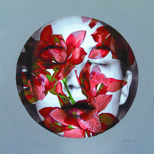 Splendid Shadows in Floating Life, No. 6, 2007 Ye Hongxing was born in 1972 in Guangxi, China. She graduated from the Guilin Academy in Guangxi and received her MA from the Central Academy of Fine Arts, Beijing. Her work has featured in exhibitions in Shanghai and Beijing as well as the USA, Japan, Italy and Germany. In 2006, she was selected as one of the top 20 young emerging artists in China at the Dragonair Emerging Chinese Artist Awards. In her series of self-portraits juxtaposed with traditional Chinese porcelain patterns that use the western medium of paint on canvas, she hints at the swift changes in China.